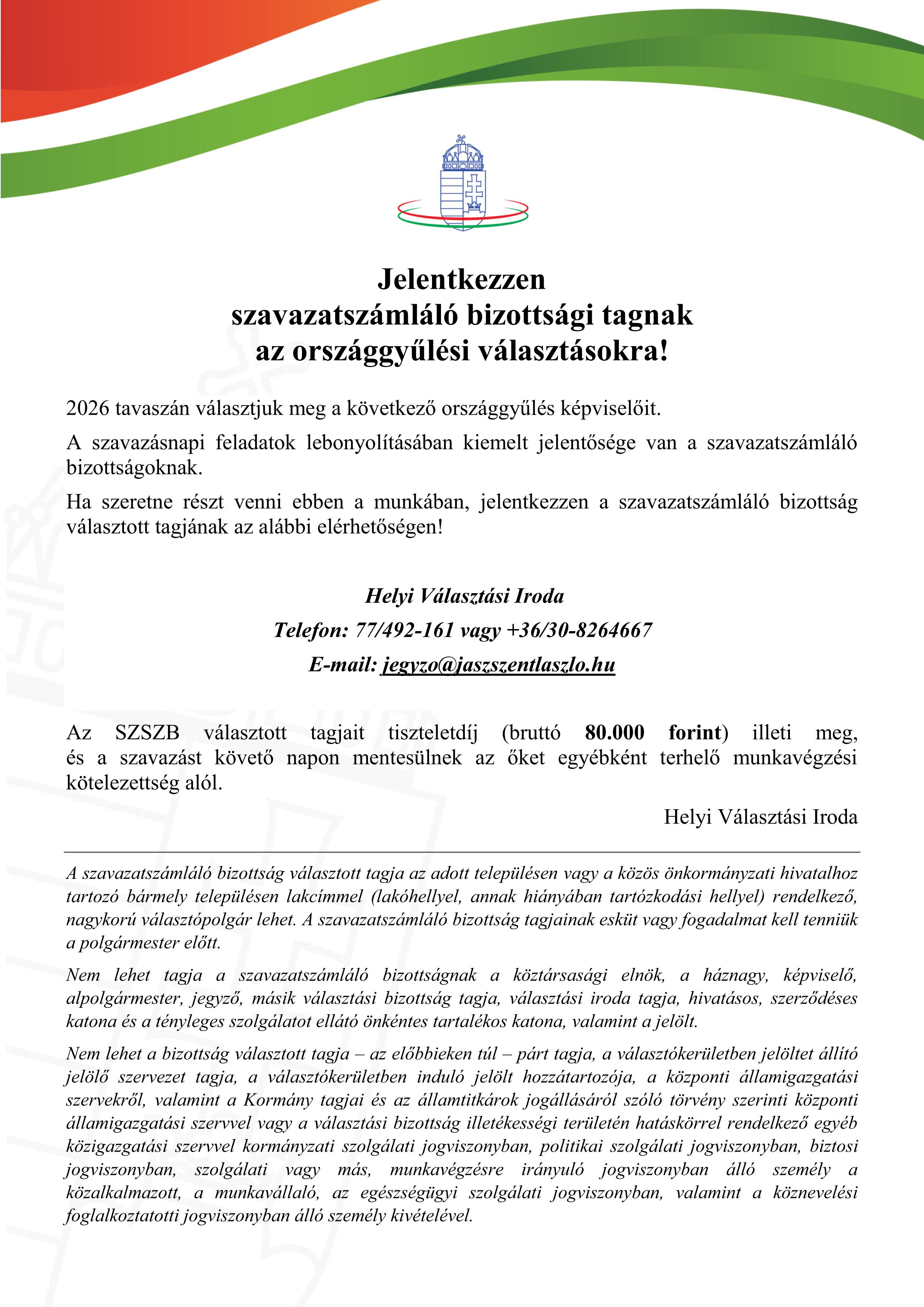 Jelentkezési lap szavazatszámláló bizottsági tagságra Letöltés
